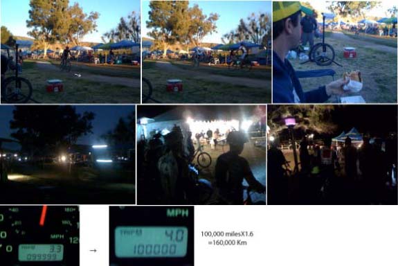 昨日Huzbyに連れられ(Chipも一緒)バイク(=自転車)の12時間レース観戦場所はここRedlandsから車で約1時間。San Diegoへ行く中間のTamacula市。(ワイナリーでも有名以前紹介したのはココとココ)山の中のコース、1周約9miles(14.4km)を朝9時開始~夜9時迄、12時間の走行距離を競うもの。スタート/ゴール地点付近はコース沿いにスポンサーや参加選手達の家族、友人等がテントを張って待機、観戦。BBQしたり音楽をかけたり、子供達は周囲を駆け回ったり、バイクで走ったり(もちろんコース外)とても和やかムード。選手達は時々テントに立寄り、着替えや飲食、食料調達、バイクの調整、ちょっと休憩...etc.私達もその付近で観戦それ以外の場所での観戦はできず、どんな凸凹アップダウンのコースかは分からないけど、早い選手で1周約40~50分、平均では1時間前後だとか。老若男女、皆、己との戦い!? 体力勝負!? 限界への挑戦!? それともEnjoy!?夕方薄暗くなると、選手はライト(ヘルメットとバイクの本体の2つ)をONにして走行。6時で真っ暗、それよりさぶっ!私達は撤収駐車場へ行く途中、スタート/ゴール付近に多くの選手。観戦?かと思いきや、チーム対抗の選手達。12時間を2人で走るまたは3人で走る部門もあり、交代のため待機しているという。皆々様お疲れさまでした。さて、帰宅途中......我が家の愛車がめでたく100,000milesとなりました。昨年はセドナ、グランドキャニオン、そしてコロラドへと走り、事故も故障も無くこのまま頑張って走り続けて欲しいですでは、また