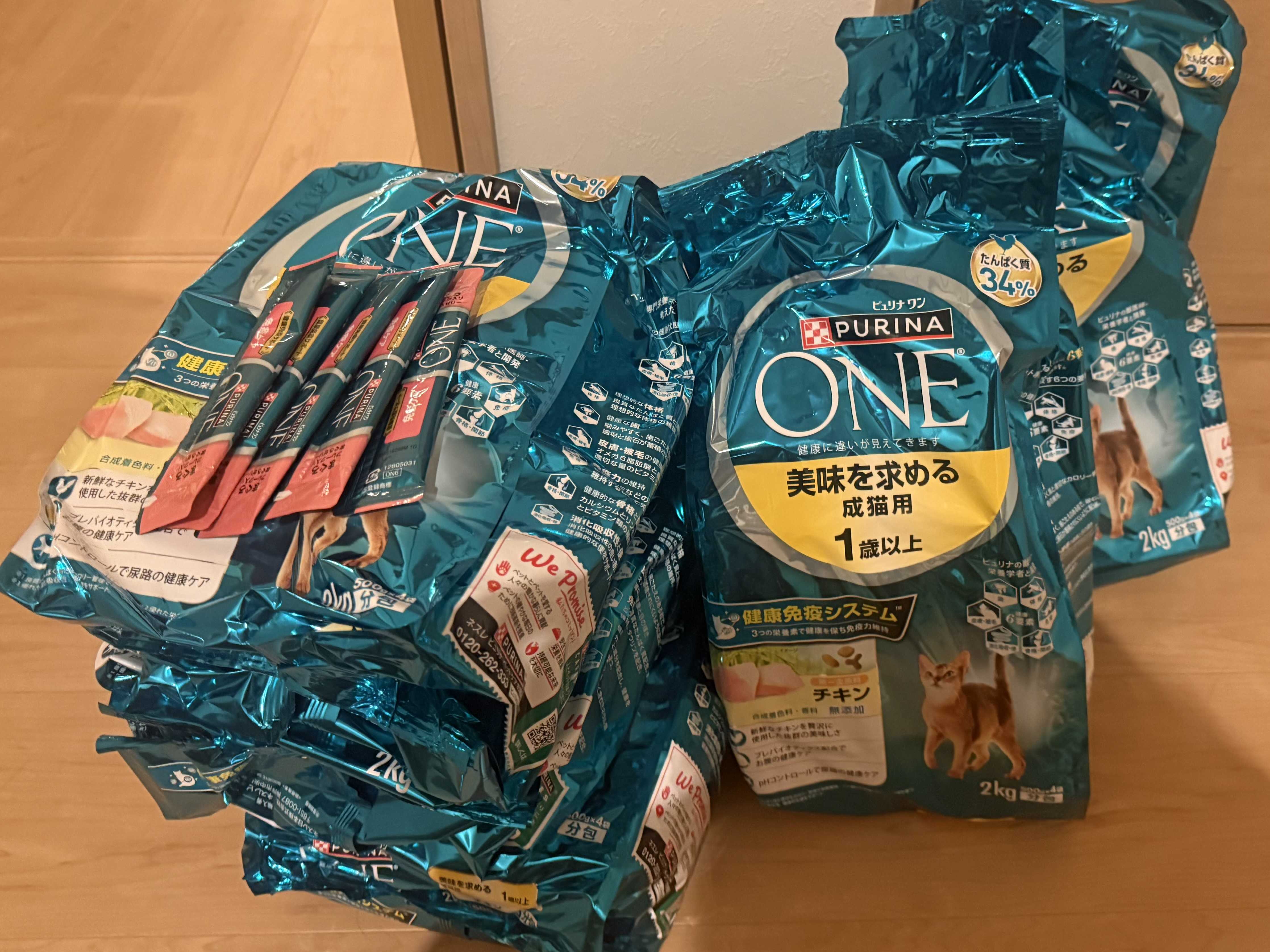 ピュリナワンキャット 美味を求める成猫用1歳以上チキン(4袋入×6セット(1袋500g))【ピュリナワン(PURINA ONE)】価格:14,388円(税込、送料別) (2025/9/11時点)楽天で購入Amazonもどんどん値上がりしているため楽天で購入ポイントを考えると安くなりました。約一万ほど(12キロ)Amazon4.4キロが約4500円なので今回は楽天で購入これで半年以上は安心