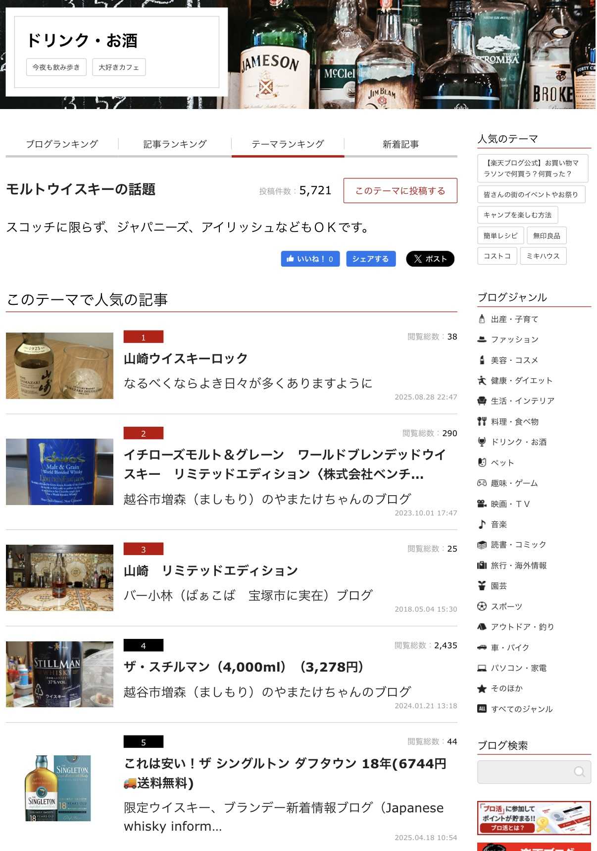 山崎ウイスキーについて書いたこの記事だけ閲覧数多いと思ったらテーマの人気記事の1番に選ばれてた。閲覧数かなり少ないけど何基準?