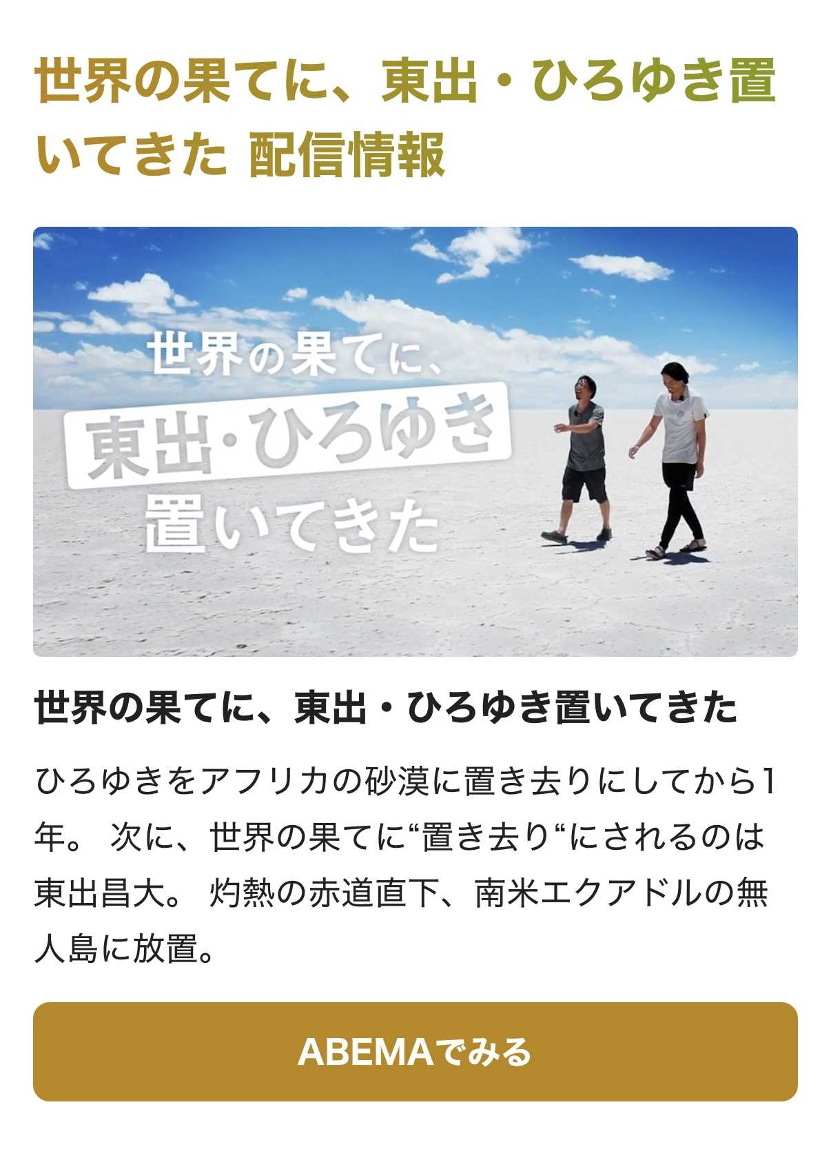 世界の果てに、東出・ひろゆき置いてきたをまたみたいけどABEMAプライム会員入るか数ヶ月悩んでます。サブスク入る敷居が高いのなんでだろ?