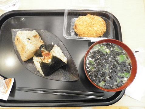 東京勤務になって大変になったのが、絶食となる健康診断項目を分散して行うので、年に3回も絶食になること。その中でも一番しんどいのがバリウムを飲む胃のレントゲン。これで放射線を浴びた上に2日くらい調子が悪くなるので、病気を見つけるメリットと体に与えるデメリットで本当に割りが合うのだろうかと毎回疑問に思います。健康診断は一般の病院なので、終わったら朝食。と言っても、あまり食べる場所がないエリアなので、簡単におにぎりで済ませました。権兵衛適当におにぎり2個(ピリから豚みそ、きのこ)と味噌汁、メンチカツを注文して、しめて600円。600円としては少々物足りないですが、近くに牛丼チェーン等のご飯ものを食べられるお店がなかったので、しようがありません。お得用216個セット・信州産 野沢菜おにぎりの素「10020676」【smtb-k】【kb】
