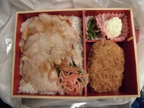 3日は所用で日帰り東海遠征。時間の関係で、昼は新幹線で駅弁。食べたのは、生姜焼きメンチカツ弁当(930円)。カロリーとタンパク質で栄養バランスは???ですが、弁当なのでそこは妥協。味は想定とおりです。