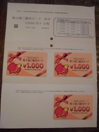 すかいらーくの株主優待です。食事券(3,000円分)100株で投資額は十数万円なので、食事券だけで利回りは3%以上。配当も貰えますし、使う方なら、メリットはあるのではと思います。すかいらーく創業者が伝える「売れて」「喜ばれて」「儲かる」外食業成功の鉄則