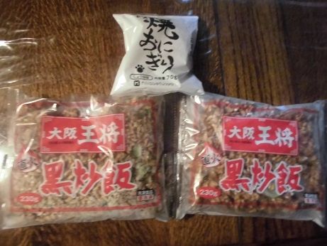 Lion FXの取引でもらったもの(8月分)です。ぞろ目キャンペーンの炒飯2つと取引量10万通貨でもらった焼きおにぎり。炒飯は大阪王将のもの。これは冷凍食品なのに意外と美味しくて、重宝しております。