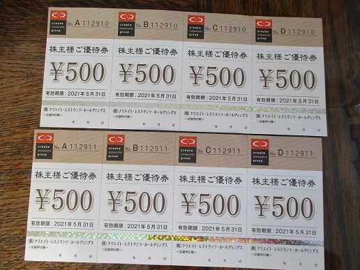クリエイト・レストランツ・ホールディングスの株主優待です。食事券 4千円分(200株で年2回)我が家はかごの屋で使っていますが、結構いろいろなところで使えます。飲食系は業績が悪いので、株価は残念な状況。早く状況が改善して、株価でも頑張って欲しいです。桐谷さんのもっと儲かる株主優待生活 NISA対応版【電子書籍】[ 桐谷 広人 ]
