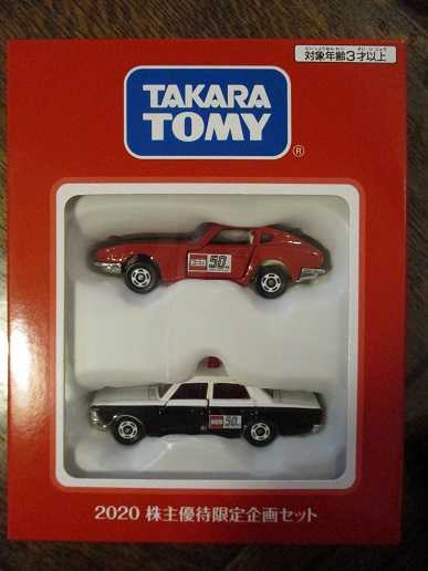 タカラトミー(100株)の株主優待です。50周年トミカ・日産 フェアレディ Z 432・トヨタ クラウン パトロールカー毎回、きれいに取っておけば将来高く売れるのかなと思うのですが、開ける前から息子が虎視眈々と狙っています。とうことで、息子のおもちゃになりました。【新品】2017 タカラトミー株主優待限定企画セット【非売品】(トミカ 2台セット) 240001008025