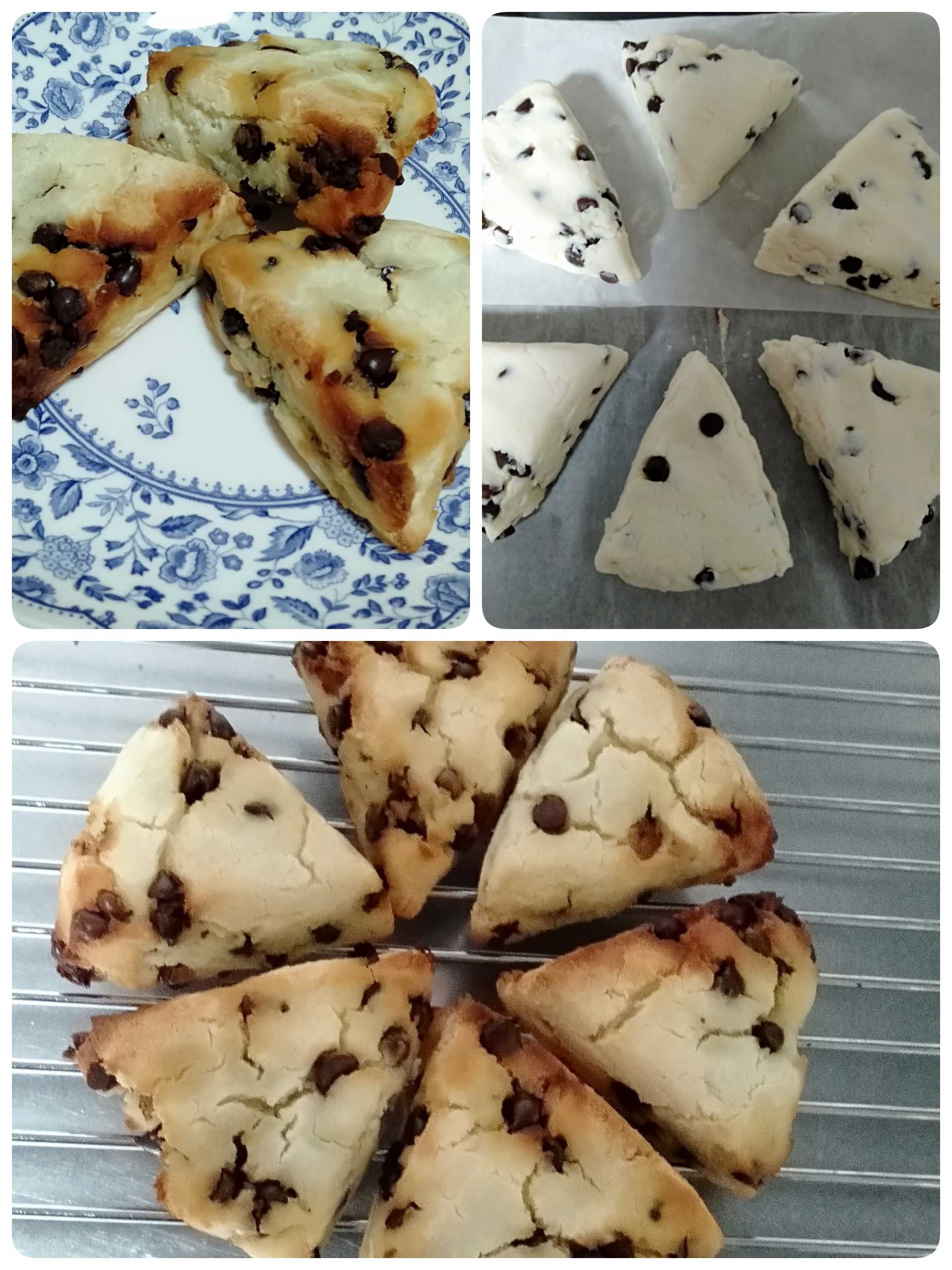 今日のおやつは米粉でチョコスコーン🎉今日はゆっくり寝た寝た😀 またポーチを縫っていますまだ途中