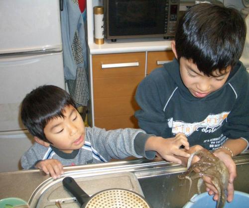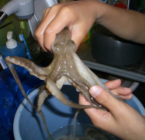 にゅるにゅる動くたこを持って帰ってきてくれたので