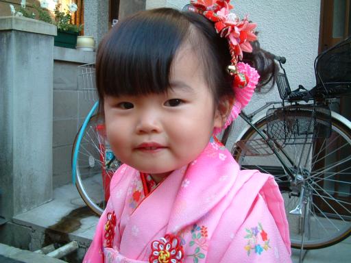 行ってまいりました ピンクは似合わないんじゃないかと思っていましたが、 ピンクの着物も、それなりに可愛かった 娘の成長をかみしめますなぁ~ 先月、撮ってもらった写真も出来上がってたんだけど 肝心の名前に間違いがって、20日頃になっちゃうそうです・・・せっかくのお祝いに「ケチ」をつけられたみたいで、 ちょっとショック・・・ まぁ七海は可愛かったんでヨシとします ナナデレラは魔法で『あんみつ姫』になりましたが 魔法はすぐに解けてしまい神社に着く頃には、 キレイに結ってもらった髪はダラダラに・・・。 さらには、祈祷してもらってる最中に 旦那と私の手をつかみ 『ぶら~ん』としてみたり、帰りにもらえる風船をみつけて 『風船やっ!』と騒いでみたり・・・。 さすが姫様!という感じでした