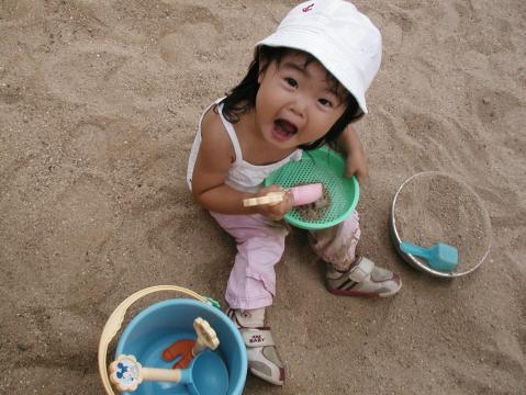 ここんとこ、よく公園へ出掛けます行きは七海と2人で『こうえ~ん!こうえん!』と盛りあがっていきます♪砂場が大好きで、お砂まみれになってます家に帰ってから服を脱がせると、とんでもない位に砂が出てきますだから玄関で、丸裸にして、そのままお風呂へ直行です。最近はブランコも上手に乗れるようになってきましたすごい!すごい!!後ろから支えると、ものすご~く嫌がるので、見ている方はハラハラ・・・。お願いだから調子に乗って後ろにゴロリしないでね・・・って感じですねベビープール・公園・ベビープール・公園・・・・こんな夏の毎日に、もう真っ黒になってますめんどくさがりの私は紫外線対策、まったくしてないので、歳とってから後悔するんだろうなぁ・・・。