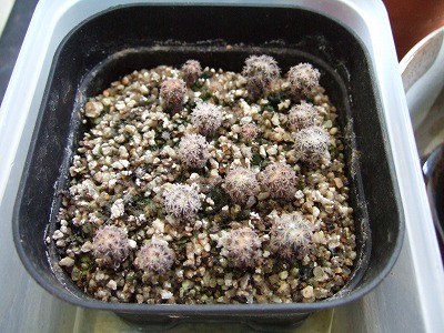 去年種を蒔いたサボテンです。管理が甘く、冬の間もずっと屋外でほったらかしにしていたらやっぱり日焼けを起こしました。それでも春になって再び水を張るようにしたら成長し始めました。「こんなにたくさんどうしよう?」が最近の悩みです。明星(と思われるもの)↓発芽1日目うちのサボテンはほぼ屋外のため、加温設備などはありません。徒長するぐらいなら日焼けのほうがましかなーと思ってます。いい加減です。
