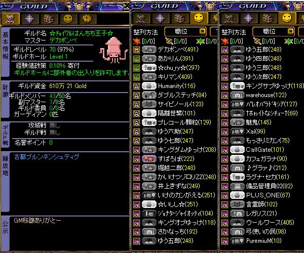 PCガードを解除できてログイン以前にインしたのは、久々にインしたらアイテム無くなってるんだけどって連絡した2009年でしたほんと昔だねぇ懐かしいinしたらやることといえば…そうだね、ギルド倉庫泥棒だね。シーフだけにって思ったらこいつWIZでしたはんちち王子の倉庫から勝手にお借りしました。モリネル外周でシーフが狩るのに使います飽きる前には返しますんでww許してくださいwwあかりんのブログに直接言わないあたり悪質だけど、誰もインしてないからバレないはず完全犯罪成立だわあ、シェーブは22人所属、20人元老、1名ぎるます、1名新入りギルド員で残ってました。ダンカさんマスタっすよインしてすぐあみゅさんから、ささやきが来てびっくり廃人はささやきすら最速装備もしっかり廃人してました、ぶっこわれだねーそんなになってるのかーっていう新鮮さがなくなるまでちょっとRS体験してきますw