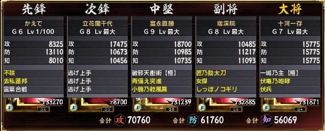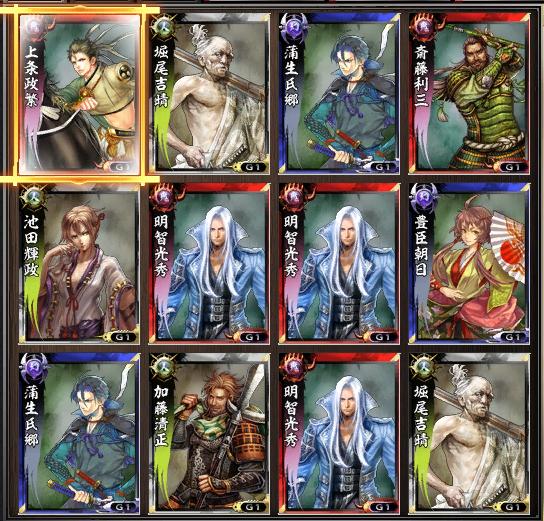 ハァイ!こつこつやってる鬼武者ソウル、パーツパーツはあれどデッキには遠いというライトユーザーですが、半年近く貯めてた薬を正月期間に開放したため、結構揃ってきました育成と継承はまだまだG6作れた辺りから、一気にG7~G10開放されたので、育成間に合わなさすぎるデッキの改良もこれから。これからだから。ま、無課金ライトユーザーがこんな感じでやってるってのを普段の鬼物語用デッキ晒し先:封印+攻撃下げ下げるだけなら討魔の気迫+西海3つ巴+αの方がいいかもしれない。不咲は安定しない普段は下のどっちか使って家宝貯めてます次:部隊攻撃上げ頑張って誘い誘い誘い逃げ逃げ逃げを作るも出来上がった頃には産廃レベル発動率5%の家宝で100%になるため安定感は抜群中堅:火力青備えが一番倍率低いけど発動率がぁ…ってなる大奥は持ってるけど育成が間に合ってないので、今は発動+10%の家宝つけてます雷光一閃はもうちょっとデッキとか決まってから使いたい副将:吸収+部隊上げ+火力やらかした形の武将尻尾のこぎりの発動に難ありで、発動+5%家宝付け尻尾のこぎり欲しい…orz大将:部隊上げ伏龍と伏兵が75%発動こうしてみていくと大奥のスキル+30%が欲しいですね手持ちだと落涙大奥銃後の先鋒がいい気がしてきます家法1周年+皇剣*2、コケコッコ*2でやってます備前完成しても使わないかもしんないステ入れ替え防ぐ方がいいよねー今回のBGMsaga2の死闘のはてに(arrange)http://www.youtube.com/watch?v=pPcKS2Y2gzE