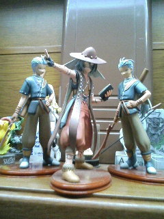 今日の台詞は「上杉 謙信」のお言葉から~。声優は「朴さん」!!結構ナルシストなお方なんだよね。ところで先日今集めているファンタジアのフィギュアを買いにいったんだよねぇ。中々買いに行かないしどうせならということで2つ購入!!そのときにアビスのワンコインフィギュアもショウケースに飾ってあったんだけど商品が見あたらないので泣く泣くあきらめたよ・・・。次に見つけた時は3つくらい購入してやる~!!!そして家について早速開けてみることに。さてさて~、期待の一個目は~?テェスター!!!・・・クレスかミントがよかったn(殴前もこんなかんじだったな~確か・・・。いや今日は2個あるんだ! ダブったんじゃないだけマシだ!続いて2個目を開!!ちょっと形で当ててみようと思い触ってみたんだよね。・・・・あれ? この形は・・・?まっ、まさかぁぁぁぁぁ!!!!チェスターでしたorzちくしょ~~~! なんでよりによって同じの2個も置いとくんだよ~!!!どうせなら1個づつ違うの置いとけよ~!!!仕方ないから並べてみることに。・・・なんかチェスター2人がクラースを守ってるみたいだ~。今度こそクレスか女性キャラをゲットしてやる~!!目利きを鍛えよう!でわでわ~(・ω・)ノシ