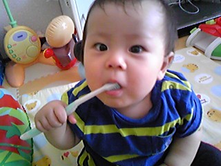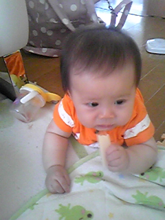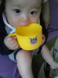 息子ちゃんは5ケ月に入り今日から離乳食をはじめました。10倍粥をすりつぶしたものをパクリ何も抵抗なく先週から便秘でマルツエキスを湯に溶かして飲ませていたからスプーンはもう慣れたようで・・・ 一日3回マルツエキスを飲ませているのですが最初はスプーンを取り上げられ、なめなめ今度はコップを取り上げられ、なめなめちゃんと持てるのね~コップで中身はまだ上手く飲めませんが 最近は声を出してキャッキャよく笑うのですが、声が変わったしか~し、泣き声もダイナミックになりました