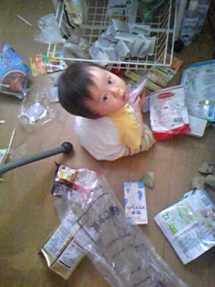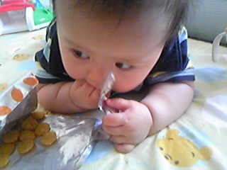息子の好きなお菓子えびちび食べてる時は食べるのに夢中でおとなしいので私も一息つけます今日はトイレットペーパーと格闘してた