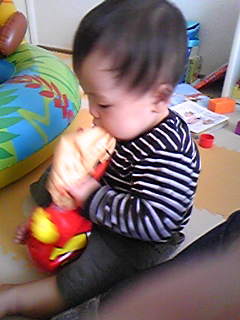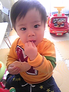 最近の息子くんは「まんま!」「んま!」とおしゃべりしますまんまなのかママと言いたいのか分からないけど、しゃべりながら私の方へ這ってくるのが可愛いそれと下の歯が見えてきました相変わらずのやんちゃぶりでお菓子をあげようと小さく割ってたらもう待てない!!と言わんばかりにお菓子を取り上げパクっと食べた部屋のものをいじりまくり、この前は扇風機倒したけど今回はブックラック音にビックリして泣きまちた