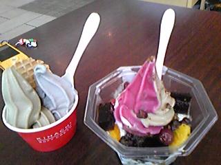 家族でららぽーとへ行って、ちょっと休憩主人は巨峰と黒糖の・・・忘れた私が黒ごまと黒糖のソフトですおいしい最近は息子が何でも欲しがるため目を離したすきに食べてしまったなんてことを考えて卵の入ってないものを選ぶようになりました