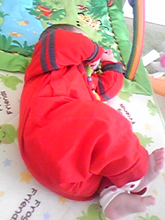 横は向くけどまだ寝返りせず・・・息子は抱っこちゃんで床に置くとすぐに泣いてしまう子でしたが、最近は床に置いてもおもちゃで遊んだりして少しの時間なら大丈夫のようです飽きてくると泣きますが