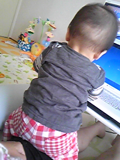 7ケ月で寝返りをしてから急成長ハイハイはしないんだけど、つかまり立ちをするようになりましたパソコンのキーボードをたたくのが好きで膝の上に乗っけてたら・・・立ち上がる最近はカーテンで遊ぶのも好き・・・動くようになって、いろ~んな物をいじられて、ひっくり返されたり舐められたりしてるけど、ダメとは言わず好奇心を大事にしたいからおおらかな目でみてますコンセントとか危ないものもあるから目が離せないし、部屋も片付かないですが