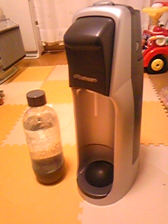 明日は主人の誕生日なので、炭酸大好きな人にはこれはいいんじゃないかなと思って注文しました“ソーダストリーム”今日届きました電気も必要ないし、ペットボトルのゴミも出ないし、コストも安いガスシリンダーと容器に水を入れたボトルをセットしてプシューと押すこと数回水が炭酸水になりましたそれからレモンティのシロップを入れて・・・レモンティーソーダの出来上がりボトルの中身が減っているのはシロップを勢いよく入れた為こぼれてしまいましたボトルを斜めに傾けてそぉっと入れるといいみたいです主人は面白いねぇと笑ってました明日の誕生日当日は残念ながら会社の飲み会 (またかっ)なのでお祝いは金曜日にします何作ろうかな・・・