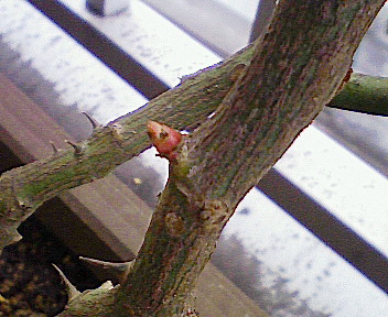 ミミエデンという名のつるバラを育てることにしました。白とピンクが混じった花を咲かせるそうです。丸裸の大苗を植えてから1週間。もう芽が出てきました。とりあえず順調に育ってるのかな