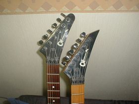 ふふふふん♪・・・80年製Charvelギターのヘッドを加工しました。ヘビーメタル王道の、とんがったコンコルドヘッドのデザイン!!それがカッコイイと思うひとも居るでしょうが・・・・やっぱり人間丸くもなりましょう。以前からヘッドの先を丸めるとエクスプローラーに似ると思っていた。てっ ことで、大工さんにちょいちょぃと手引鋸で切ってもらいました。自分でも根性決めれば出来るんだけど、失敗すると落ち込みが激しいので大工さんに任せて見守ることにしました。「どれ こんな感じにしたいんだなぁ」と聞かれたと思ったら鋸が入ってました。シャカシャカ♪と、鉛筆で描いた線にあわせて軽~く大まかにカットされたのを、自分でペーパーかけしてRをつけました。ヘビーメタルなシャーベル君がマイルドな大人の顔つきになりました。弾いてみると・・・・う~ん 角が取れたサウンドになった気がします。ヘッドの先1センチ程度を丸くしただけで印象もかわった。すこしボディーも小さく見えます。気にいったので残りの2本も切ってまるめよう!クリスマスプレゼントは早めに準備しましょう!NINTENDODS Lite (本体)在庫あります ついでにPS3も探しましたまだあるところにはあるのです。★楽天最安PS3♪新品SONYプレイステーション3本体(20GB) 最大5年保証★在庫あり 価格 67,999円 (税込) 送料別 残りあと4個 SONYプレイステーション3本体そしてなんとWii だ!!★『12/2新作予約商品』[Wii 新品-42858]任天堂 【Wii 本体】★ちょい弾きに欲しいのです。欲しいです。 亀吉↓生放送サーバー稼動中です応援してくださいランキングネット亀吉生LIVE!ネットリアル放送中見るためには、javaが必要です。見れた方・見れなかった方恐れ入りますが、この日記・掲示板に連絡ください。携帯からのアクセスはhttp://redshirt.dip.jp/i です。(接続時のキャプチャー画像になります)プレミアム光で、サーバー・LIVE作られる方は、前日の日記を参考にしてください。人気の弾痕シールあります(GIBSONレスポール80年製ヒストリックモデルでテストしてます)シールの質問・郵便代引きについてはredshirt5150@hotmail.com 宛てにメールください。もしくは、こちらから飛んでくださいアフィリエイトができるアバターホーム日記 アバタウン! 紹介と携帯からのクリックで、 小遣いが稼げるなんて素敵におもしろい♪登録したらすぐ服を貰ったポイントで買おうパンツ一丁のままの人も多いけど?人気上昇中! 日記を書いて友達を増やそう お勧め無料ホームページ!アバター付きホームページだよ。人気最高! 120万人が利用している無料ホームページカフェスタ!カフェスタ!大幅リニューアル そのままでも楽しいけど HTMLが使えるんだ!カフェスタガイド 出来ました応援してくださいランキングネット