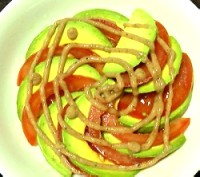 ゴマソースをトマトとアボカドにかけていただきました。