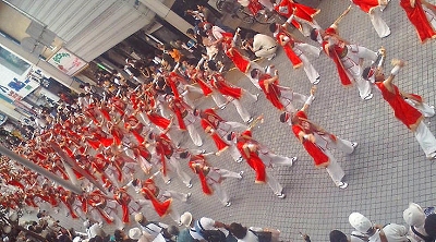 この炎天下の中、よさこい祭り2日目が開催されてました! 昨日はあまりの暑さで外に出るパワーがなく、テレビで見てたけど、今日は私のゆかいな仲間達を探しにいってきました~^^ と、その前に、お昼を食べに出た時にチラッと撮った写真 大丸の2階から撮ったので、見晴らしのいい穴場でした♪ そして降りていったら面白い地方車(じかたしゃ)が! トラックがこんなに変わるんですよ~デコトラもびっくりです(笑) よさこいでは大事な地方車。 ここから音楽をガンガン鳴らして150人くらいいる踊り子の耳に届けなきゃいけないので、 後ろはこんな感じ。 すべてスピーカーです♪ お陰で先頭チームは身体にズンズンと振動が入ってきて、耳栓が必要。 ちなみにこのチームの衣装や雰囲気は・・・ こんな感じ。 みんなが楽しそうに踊っていて、みてても楽しかった♪ さてさて、私のゆかいな仲間達はどこかしら~~ 所長が 「電話もならないし、見に行って来ていいよ」 と言ってくれたので、 前の中央公園に少し見学に行きました はっけ~~~ん ヾ(●⌒∇⌒●)ノヘロヘロに疲れた状態でも何だか変顔で撮られる人たち。。(^^; この炎天下で、この衣装で踊りきるこの人たちはすごい。。 とりあえず踊りをみて、仕事に戻って終わらせ、改めて帰りに商店街に寄った♪ 192チームも居るのに、なんてタイミングよく会えるんだろう 夜になってライトアップされてる地方車 みんなとてもかっこ良かったよ~~♪♪ それにしても地方車の音楽のすごいことすごいこと!! 鎖骨に手をやると、ドンドンと地方車の音から振動が伝わってくるのがわかる。 のど○○こもプルプルゆれてゲホゲホってなった(^△^; 唇も、話そうと思ったら、ブブブブブ・・・・って小刻みに振動でなる。 ・・・こりゃ耳栓なかったら壊れるわ(^^: ここでみんなとお別れをし、帰ろうと思ったら屋台のおじさんに声を掛けられる。 (前にちょこちょこ行ってたのでおひさしぶりーって感じに^^) せっかくなので、焼鳥2本とビールを一杯飲んで少しくつろぎターイム あぁ、こんなときに相棒そらっちが居てくれたら。。ひとりでビールなんてないのにー お土産にとうもろこしを買って帰りました~♪ そして夜、なにげにネットで受賞チームを検索してみると・・・・ なんと皆が踊ってたチームが受賞してた!!!!!! すっご~~~い!! 192チーム、約20000人が踊っているこのお祭りでの受賞は、 たったの22チーム! その中の ☆地区競演場連合会奨励賞に選ばれてました! 明日の後夜祭に出場決定!! おめでとう!!!ワーイ。(⌒∇⌒。)三(。⌒∇⌒)。ワーイ