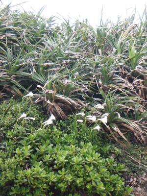 宮古島に移住して野原岳の霊石昨日に続いて今日も「郷土史講座の史跡巡り」の話題です。宮古島は隆起サンゴ礁でできた島のため、山らしい物はなくて、全体としては平べったい島です。島のほぼ中央部にある野原岳(標高110m)が最高地点です。この一帯に、14世紀中頃になって大嶽城(ウプタキグスク)が築かれたという記録があります。その城の北西端に「霊石」が安置されていました。この一帯は、戦時中:日本軍が陣地として使用し、戦後:米軍が基地として使用し、現在:航空自衛隊が使っています。14世紀以降ずーっと、軍事的要衝なんですね。霊石が置かれていた場所に施設を作る事となった米軍は、地元住民の感情を配慮し、野原岳の西方(現在地)に移動しました。高さ1.3m、直径1.1mの円柱形をしていて、極めて高度な石工技術で作られています。これほど大きく重い物を、最高地点に安置した当時の人々の想いはどんなだったんでしょうか?まず、霊石の読み方ですが、「タマイス」といいます。「霊石崇拝」は琉球諸島全体にわたって存在していました。人の霊魂を石などの硬くて壊れない物に憑依させ、生命を永遠なものにしたいという信仰心から来ているとの事でした。ビックリしたり転んだりした時、霊魂が体内から飛び出してしまう。すると体の精気を失い、病気になったり怪我がひどくなり、死に至りかねない。そこで、霊魂を呼び戻すため、病人などに石を抱かせるという風習が広くあったようです。子供が転んだり驚いた時に、体から飛び出てしまった魂を戻してあげるため、その子に小石を渡して持たせるという風習が、最近まで残っていたとの説明がありました。今回の史跡巡り参加者の方の体験談でも、「子供のころ、転んだ時におばあちゃんが小石を拾って持たせてくれた」そうです。 この後、航空自衛隊の基地内にバスで入りました。基地内に「前ぬ井(マイヌカー)」があり、大嶽城の水源として使われていたそうなんです。今は土砂が溜まって泉は湧いていませんでしたが、そこから上を見ると陽光が緑の葉を輝かせていました。こうした景色は、何百年も前と同じなんでしょう。しかし、島の最高地点近くに泉があったとは、不思議です。どこから水が流れてくるんでしょうか? 自衛隊員の案内で、大嶽城・霊石があったという最高地点へ上りました。最高地点には大きいドーム状のレーダー(?)が設置されていますが、そこからはグルッと360度宮古島を見る事が出来ます。360度の風景の内、半分ほどは海も見えています。今回は特別に、主催者である県立図書館宮古分館の館長さんが自衛隊と交渉して、施設内立ち入りが実現しました。自由に立ち入りができれば、間違いなく「宮古島の代表的な観光名所」になり、宮古島の魅力アップにつながると思います。しかし、現実には、今回参加の地元の方々でも初めて敷地内に入ったという人がほとんどでした。常時立ち入りでなくても、月に1度位の頻度で施設内を会場としたイベントを開催し、頂上からの眺望を楽しんだり井戸跡見学といった機会を作れるといいんですが、難しいのでしょうか。