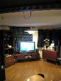 リビングの南側にガラスブロックの面があります。テレビを置いている後ろの面です。昼間、テレビを見る際、ガラスブロックから射し込む光が思いのほか邪魔になることに最近になって気付きました。 どうしようかなぁ・・・・カーテンじゃない何か、を吊りたいけど・・・・ マリメッコの布(リラックスリビングの実店舗で扱っています)をかけてみました(^^)大きな大きな花柄の、ボルドー系のカラーで、少々妖しい雰囲気です。リビングとつながっているダイニングには、こんな照明をつけているので、うまく合うかな?との思惑ですが、果たして・・・・・・・ 明るい光で確認するのは明日の朝になってから。夜に見る雰囲気とは全く違うはずですから結構ドキドキものなんです。 布の取り付けには、カルテルの脚立ティラミスが活躍。 昇り降りがとてもしやすい、優しい脚立です。