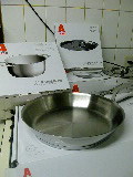 いやぁ~~、驚きました。先日私がお鍋を真っ黒にしてしまったのと時を同じくして、ALESSI社から10月に新発売される予定のお鍋が3種類モニター用にと、届いたのです。24cmのフライパンと20cmの両手鍋とフタ、16cmのミルクパンとフタです。デザインは、ジャスパー・モリソン。 シンプルさを形にしたら右に出るものはいない、そんな代名詞のようなジャスパー・モリソン。 この時期、キッチンに立つのは非常に暑く、おまけに食欲もそんなに湧かないし、お料理が億劫なんですが、、、、、(^^;;こんな素敵なお鍋をモニターするのに、「 そうめんゆでました 」 「 野菜炒めました 」 ではダメでしょうかねぇ・・・・? また後日、お鍋の詳細やレポートをしたいと思います。 (期待しないでね・・・)
