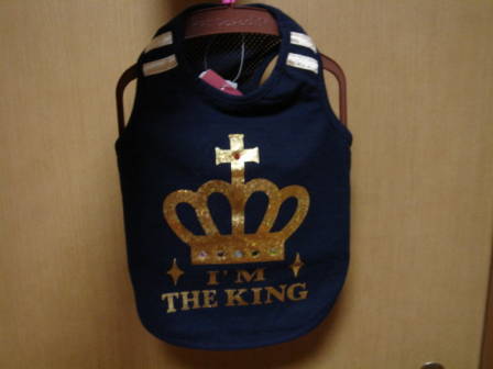 過去3回にわたりれもんのファションショーをお見せいたしました。この間、ペットショップで安売りをしていたので、またもや購入してしまった。かーちゃんとーちゃんには、「俺には買ってくれへんのにー」と愚痴をこぼされてしまったが、とーちゃんには悪いがれもん優先なのだ購入後、早速家でれもんに着せてみせた所・・・・・ れもんちゃ~ん どう「まぁ まぁ やけどな。」 れもんはそれなりに気に入ったようだが・・んっ れもんちゃん 背中みせて 「しゃーないなぁ~ はい 後ろ向いたで」 んっ んんんん 背中ドクロや~ん しかも 王冠かぶってるや~ん ・・・・・・・・・やってもうたぁ~・・・・・ ・・・・・・・・・・・・・・・・・・・・・またもや「KING」だよ・・・・・ 「・・・・・・・・・・・・・・ほんま・・・・イテまうで・・・・」