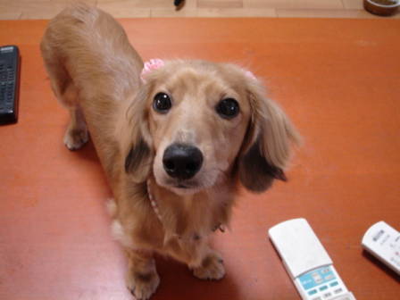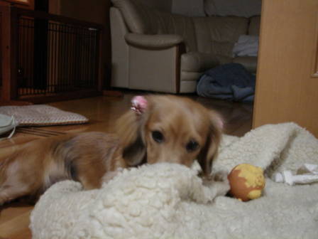 今日は、この前竹蔵くんのままが桃を食していたのを読んで早速、桃を購入 今日はとーちゃんがお出かけ(毎週木曜日はお仲間さん達と趣味でバスケットをやっているのだ)なので家でれもんとまったりしてる中、購入した桃を早速むきむき(桃は大好きだけど、むくのってめんどくさいわね。)桃がむき終わり、即効で食した もちろん、れもんにもおすそ分け れもんちゃん 美味しい?「おいすぃーい 何? この味は・・甘いけどすっきりした甘さっ・・」「口の中でこの桃の香りが広がり・・・」 あんた誰? 海原雄山? れもん様大変申し訳ございませんが、その桃はスーパーで2個380円でございます。 「うるちゃいでちゅ 恥をかいたでちゅ かーちゃんブスでちゅ」 何、ドサクサにまぎれてブスって言ってんのよ まぁ そんなれもんは無視無視ブロクチェックをするかーちゃん ・・・・・・・数十分後・・・・んん? れもんちゃん大人しいわね? れもん!!どうしたん!! 何すねてるんや さっき、かーちゃんの事ブスって言った事を気にしてるやったら、もういいよかーちゃんはもう気にしてないよ こっち向いて頂戴。 ってー あんた!! 穴あいてるやんけー 「何のことでちゅか れもん わかんなーいでちゅ 」「言いがかりはやめて欲しいのでちゅ」 「言いがかりはやめて欲しいのでちゅ」って あんたの首輪に付いてるのは何クッションの綿がへばり付いてるわよ