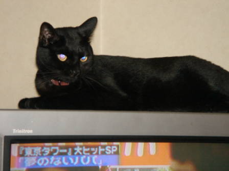 昨夜我が家で仁義なき戦い?が勃発れもんとぷりんが寝室で大戦争を始めた(追いかけっこなんですがね)状況はれもんがぷりんを追いかけているって感じですね「ちょっと れもんはん いい加減にしてもらえまへんか」「いくら温厚なわてでもいい加減キレまっせ」 おっとー ぷりん姉さん キレぎみですね 「んあぁ~ じゃかましーんじゃ われー いてこますどー」「降りてこんかーい」 負けずとれもん姉さんもかましを入れてますね リボンがちと可愛らしさをアピールしてますが・・・しかも一個取れかけ・・・早っ ぷりん姉さんが降りた瞬間にれもん姉さんに必殺 猫ぱーんち 亀田3兄弟も驚く瞬殺ぱんち れもん姉さんKO負け 弱っ そんな騒動を夜中の1時頃勃発 昨日は疲れてすでに寝てたかーちゃん イライラ全開 お前らうるせーんだよシバクぞワレー