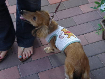 この前、妹が来てくれた時 一緒にお散歩に行きました「この服 妹が買ってくれたんやろー ありがとうなぁー」「今度はマッチョ服じゃないやつ買ってきてなぁ」妹 よろしくね 散歩のついでに小腹が空いたのでケーキ屋さんに寄ってみたもちろんれもんは入れないのでかーちゃんとお外で待機です「かーちゃん 妹 まだ 出てけーへんで 遅いなぁー 」 すぐ出てくるからちょっとまっときなさい「妹ー まだかー はよ出てきてやー まっとるんやでー」 おっ れもんちゃん 妹の事がすきやねんなぁー 可愛い奴やなぁ ・・・・数分後・・・れもんが待っていたのがケーキだと言う事に気が付くかーちゃんと妹・・・・でも・・・・・・あげないよ・・・ ケーキが貰えるまではきゅるるんれもんに大変身しかーし「あたし疲れてん 妹 抱っこさせてあげるわ」一瞬で「KING れもん」にまたもや大変身 ・・・・・・第一家来 妹 れもんを抱いて家まで帰る・・・・・