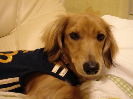 昨日はすっかりきんに君となってしまった 我が子 れもん・・・ だめよ このままでは リベンジよ れもん そうだわ 妹がもう一着買ってくれてたわね さあ これを着てリベンジよ (う~ん ちょっと・・・危険な香りがするわね・・・・・しかも THE KINGって・・・・・)まぁ いいわ 早く着てちょうだい 後ろ姿はまぁまぁね 「まぁまぁとは、どういう事やねん 似合ってると言え」・・・・・・・ とっ とにかく 前を向いてちょうだい ・・・・・・・・・・・今日は・・・・・・・体操服みたいね・・・・・・・・・・・・ファイトー 一発!!・・・・ 「・・・・・・・・・・・・・・・・・・・・・・・・・・・・・・・・・・・・・・・・・・殺ッ」