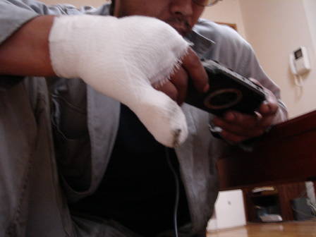 今日、とーちゃんが怪我をしちゃったよヽ(ヽ ̄□ ̄))))) ヒイィィィ!!! 仕事中に右手の小指を切ったらしいとーちゃんの仕事は鉄工所勤務(家業)病院で2はり縫ったみたい本人はいたって元気なので心配はぜんぜんしてはいないのだが怪我人になるとなんやかんやうるさい!!『俺は怪我人オーラ』を発してうっとうしいたらありゃしないこう言う時ってやっぱ嫁たるものは旦那に優しくするんだろうな・・でも、優しくしてもお礼一つも言わない旦那なので旦那が『ありがとう』と言うまで『ありがとう』は? 『ありがとう』は?とついつい聞いてしまう。こんな嫁だから旦那も『ありがとう』と言わないのかしら・・ 『おかーちゃま・・おとーちゃまは大丈夫なんでちゅの』 あぁ 大丈夫よ (* ̄▽ ̄*)ノ" その内治るよ 『むしゃ むしゃ それはよかったでちゅわ』 っておい!w( ̄▽ ̄;)wワオッ!! ぜんぜん 心配してないやん( ̄▽ ̄;)!!しかも座布団4枚ですか!! おぉーo(* ̄○ ̄)ゝーーーーーーいっ! 山田くーん 座布団もって行っちゃてー( 」´0`)」 しかし・・うちのとーちゃんの存在って・・・・ 哀れなとーちゃんにポチっとな