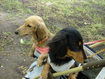 ヾ(。・ェ・)コンバン波!!(。・ェ・)ノノ^\/\/\/\/\☆)゚д゚||)グハッ!昨日、お友達のワンちゃん(ペレちゃん)がご挨拶に来てくれたのに写真を撮り忘れて悔しがっているれもぷりんでございます。ペレちゃんもMダックスの男の子。めっちゃ可愛いかったよ。サマーカットで丸刈りになってた・・・(尻尾も丸刈りカットされてた・・ちとビックリ) さてさて皆様からの熱烈コメを頂きながらコメ返が全然、出来ておりません。本当に申し訳ない!! m(*- -*)mス・スイマセーン 今日は姉家族に誘われて近所の緑地公園にバーベキューしに行ってきました!!勿論!れもん様とチョコたんも一緒です。 『今日はドッグランじゃ無いでちゅね、おねーちゃま』『チョコたん。今日はお肉食べ放題みたいでちゅわよ』 おいおい! あなた達はかーちゃんがもって来た『本物牛ジャーキー』があるでしょ!! コレを食しなさい! 『おねーちゃま・・・やっぱお肉は食べれないみたいでちゅよ・・・・』『・・ふっふっふっ・・チョコたん! 大丈夫よ きっと食べれるわ。 だってココには『何でも言う事を聞いてくれる家来』がいるんでちゅよ』 何、言ってるん! そんな家来何処におるん。 『チョコたん。 あの家来は何でもくれるのよ!! きっとお肉をゲット出来るハズでちゅわ』 そんな訳ないやん、れもん様甘いわね。お義理兄ちゃんはね『犬に服なんて着せるなんておかしい!! 犬は寒くないんや!!』『犬用のケーキ?? 犬用のパン?? 可笑しいんちゃうか!! 』 などと、犬には厳しい人なのよ。そんな人から貰える訳ないやん。 ・・・・・・・・・・・・・・・・・・・・・・・・・・・・・・・・・・・・・・・・・貰っとたわ しかも、れもん達が火傷しないようにちゃーんと冷ましてくれとった・・・・ お義理兄ちゃん。ありがとう。