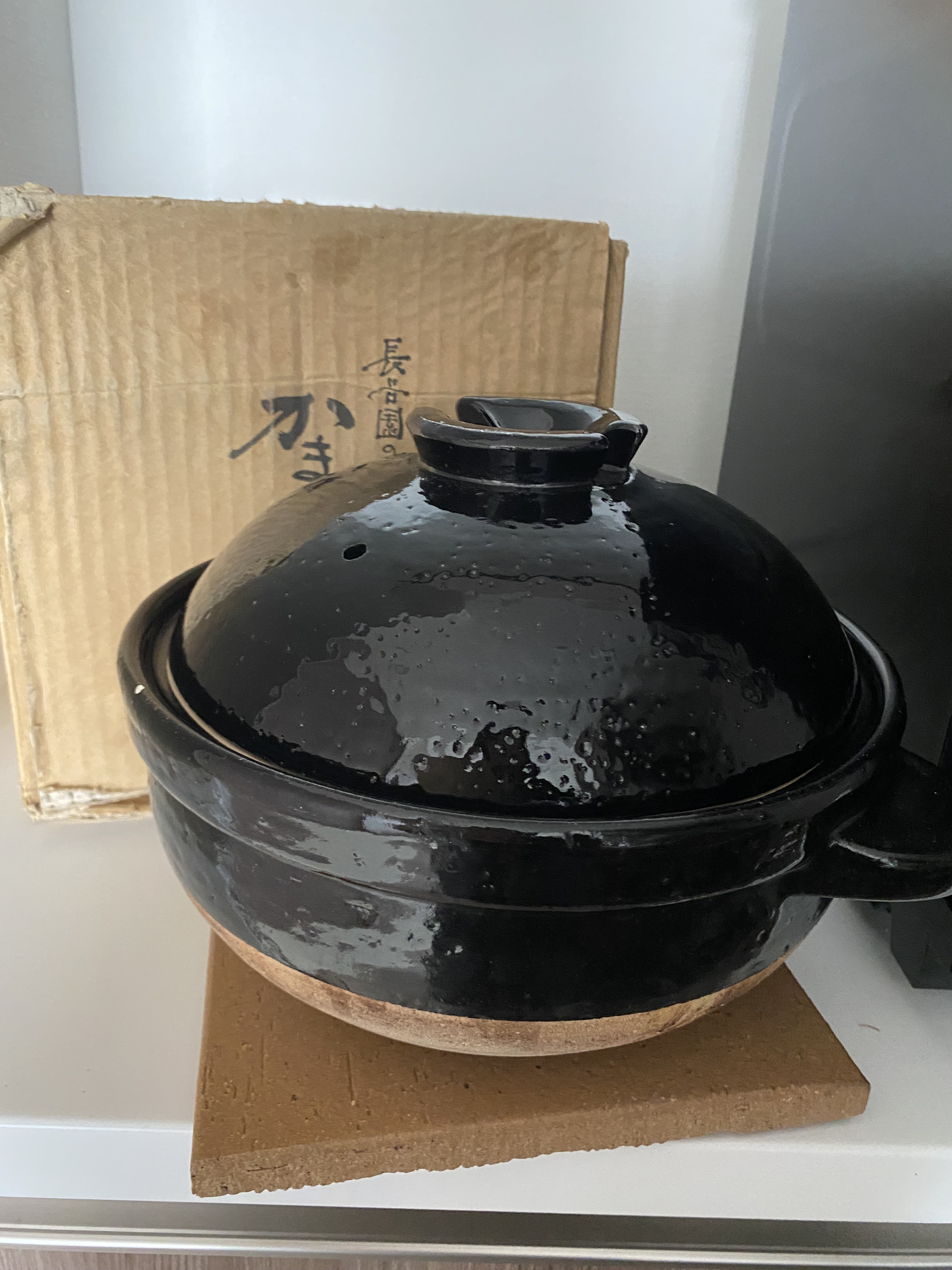 長谷園 かまどさん (現在はポイント交換対象品外)年季の入った箱でお分かりいただける通り10年以上愛用しています。白米は週一程度しか食べないので月一2合これで炊いて小分け冷凍。初めは水の量とか癖を知るのに苦戦しましたが、今は目分量でいけます。ま、失敗もありますが笑。失敗ですら土鍋で炊いた、と思えばそれだけで美味しい、気がします。 実は蓋だけ割ってしまいましたが正規の販売元でパーツ販売もされていたので助かりました。片付けは正直面倒ですが、重宝しています。