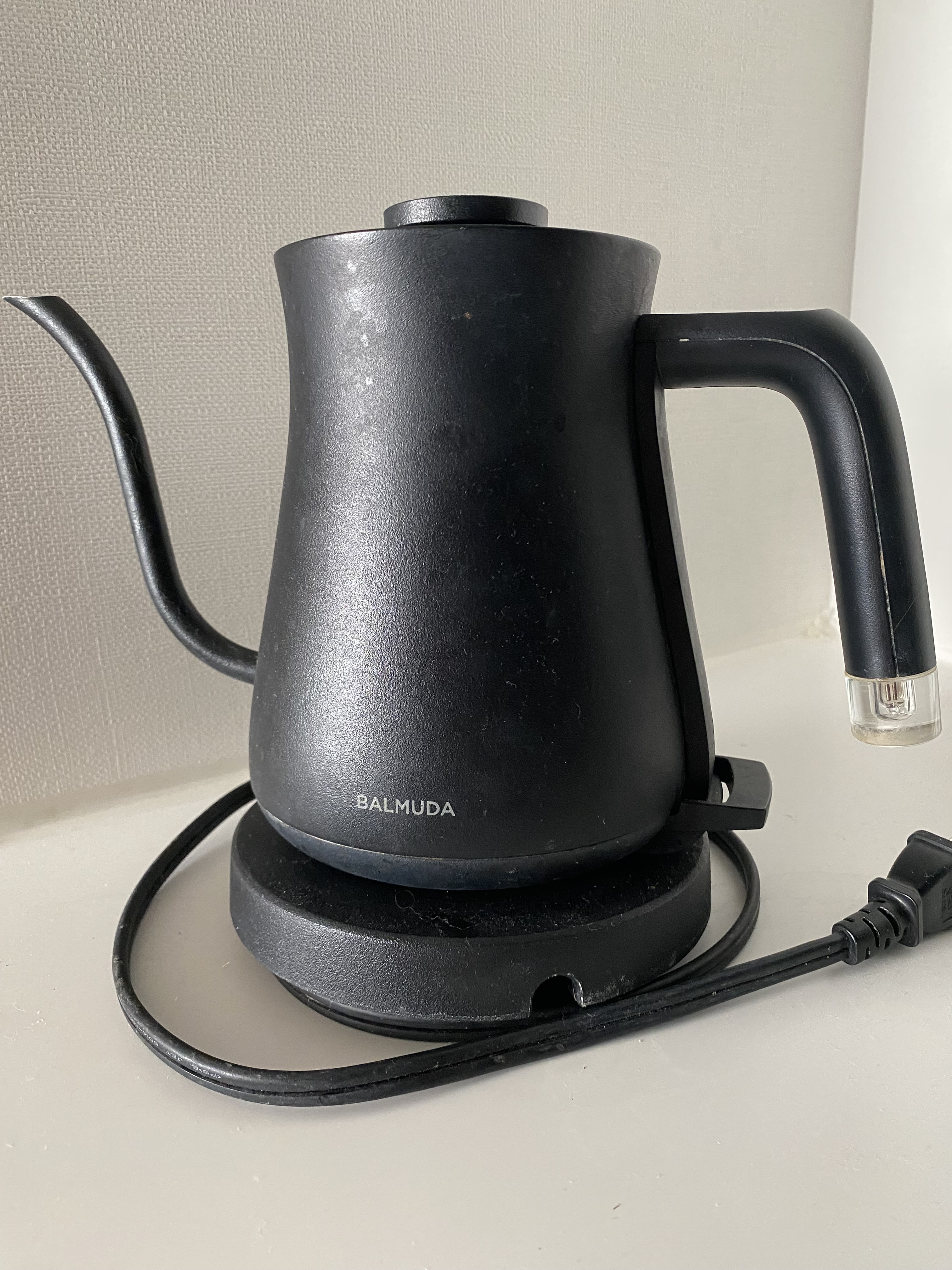 BALMUDA ポット。 (現在はポイント交換対象品外)これ2台目です。1台目は自分で購入したのですが2-3年でスイッチが壊れたところポイント交換商品でみつけたので。うちのワンはカリカリふやかす派で朝晩、日に2回は必ずお湯を沸かす必要があるので必須アイテムです。注ぎ口もコーヒーを淹れるのに丁度良いし何よりデザインがGOOD。私のは数年前モデルですが年々新バージョンが出ているようですね。