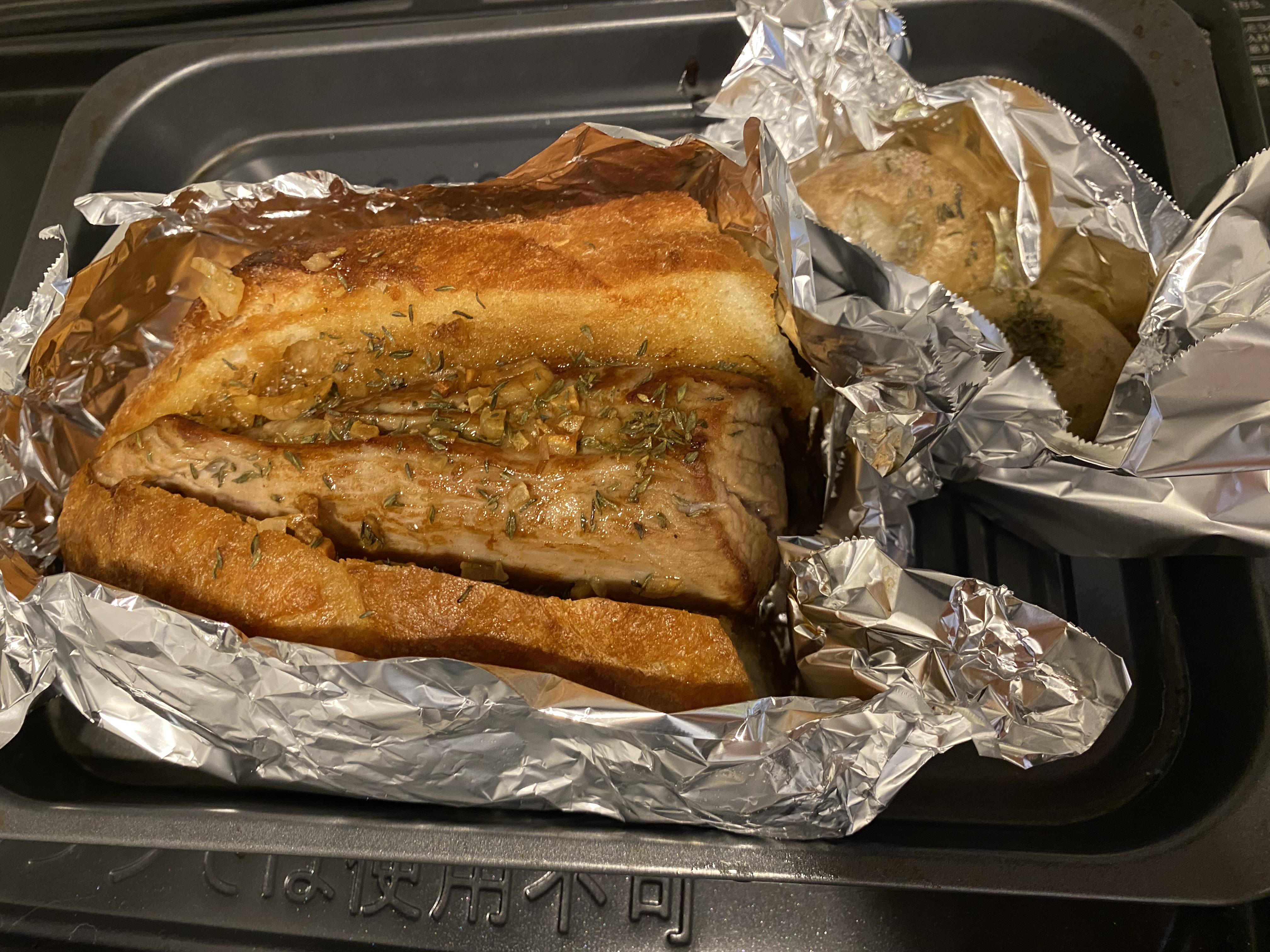 はい。一人飯ですが何か笑バゲットポークと言う某D&Dのレシピ。昨年レシピ公開されているのを見つけリピで作っています。これはバタールハーフで応用編。バター使用量結構引きます。残ったら冷凍して平日晩御飯に。