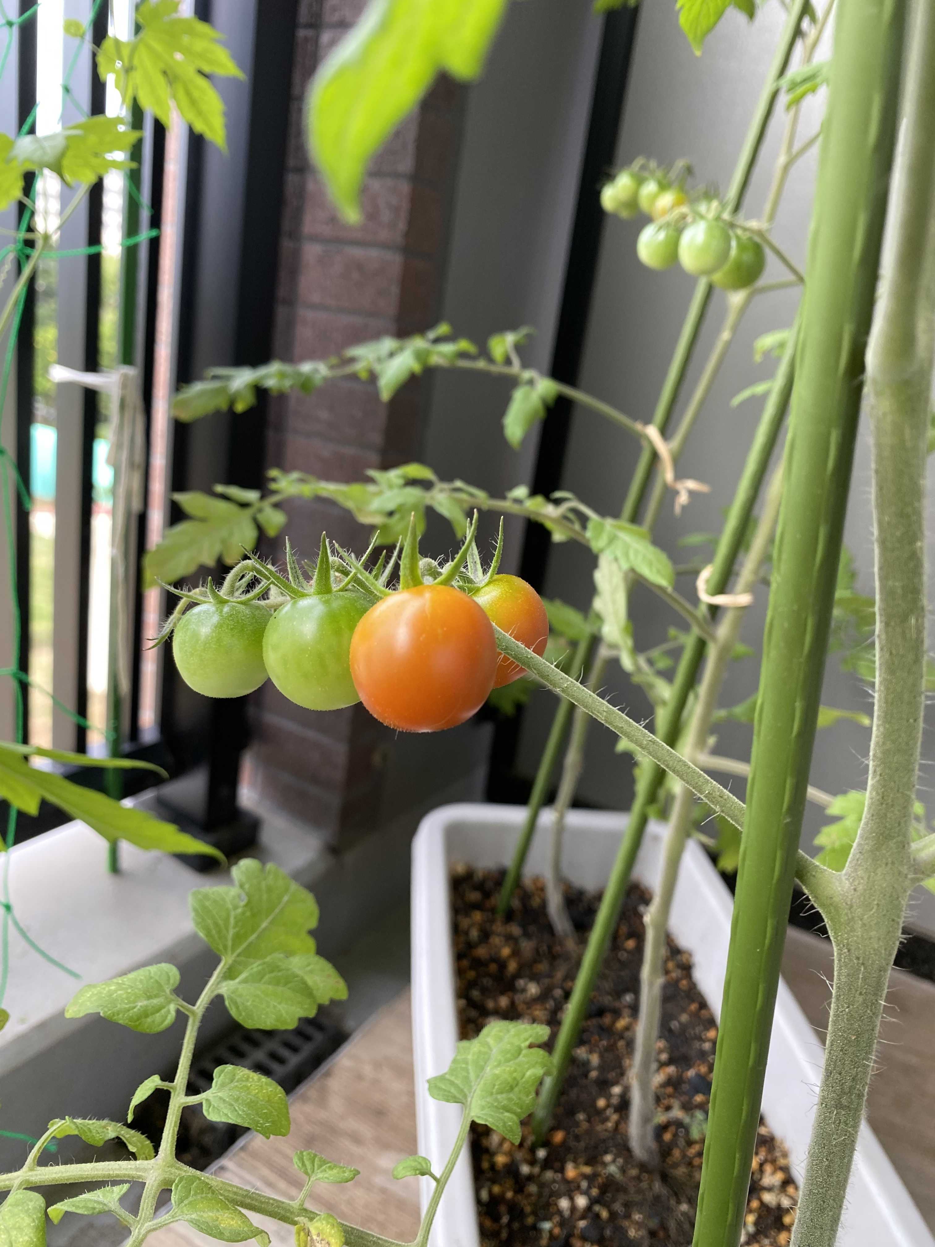 ミニトマトは来週位収穫出来るかしら。でも今年は3段目以降中々花が咲かない。