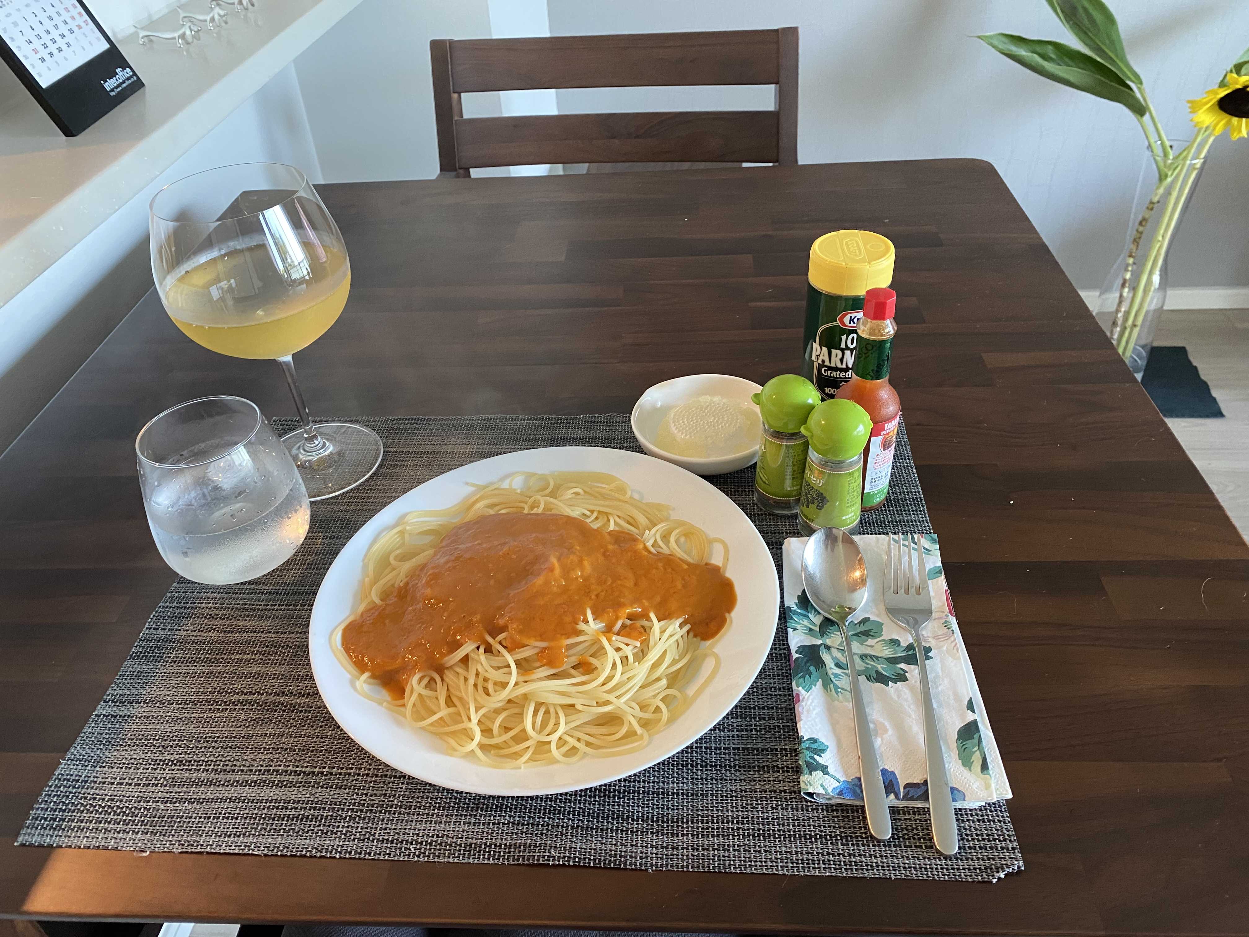 火曜日:蟹トマトソースのパスタ(レトルト)