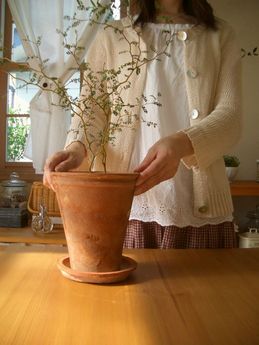 我が家にやってきた新入り君です。どうしようかなあ・・・と数ヶ月悩んで手に入れました♪新しい植物を購入するときは、我が家の家に合うか、どんな手入れが必要なのかどこに置くのか・・・・いろいろ考えてから決めます。かわいいとか綺麗だけで衝動買いすると、以外に育て方が難しかったりして枯らしてしまったりするので・・・・我が家に来てしまったせいで、枯れてしまったらとてもショックです。だから、出張中も元気に家で待っていてくれる根性のある子でないと・・・・この新入り君は、調べたら自分でも手入れできそうだったので♪葉っぱがなんともかわいい・・・・・枝も不思議な角度で伸びています。さっそく、ぴったり似合う植木鉢に植え替えて♪がんばってお手入れするので、長生きしてね~~~~~