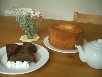 これは、先日のレッスンに、生徒さんがもって来てくれたケーキ♪しかも! どちらもご主人様が作ってくれたとのこと~~シフォンケーキはNさんのご主人、チョコレートケーキはHさんのご主人。・・・・どちらも立派にできている・・・すばらしい・・・・私の教室では、10:00から18:00までのロングコースがあります。おやつの時間は生徒さんたちがお菓子を持ち寄って、教室でワイワイ♪こんな風にご主人が「みなさんでどうぞ・・」と奥様に持たせてくれることも少なくないの♪考えてみると・・・ここに来る生徒さんたちはご主人と仲良し♪関東など、県外から通う生徒さんたちは高速道路を使って来ているのですがご主人が一緒に来てくれることが多いのです。何時間も運転して、奥様を教室に送り届け、自分は福島を観光しつつ時間をつぶす・・・終わる時間には迎えに来てくれるのです。こんな仲良し夫婦が何人もいます。そうかと思えば、車で5分のところを送ってくれるご主人もいます~~~雪道は危ないからと送ってくれるかたも・・・・・作品展になれば、妻の作品を見に来てくれるご主人様の多い事♪おじいちゃん、おばあちゃん、お子さんを連れて、ご家族み~んなでくる生徒さんもたくさんいます。奥様の趣味に興味をもち協力的な家族がなんて多いことでしょう・・・それはその家族の奥様が素敵な人だからこそです♪私のまわりにはそんな素敵な女性たちがいっぱいです。・・・・それは本当に幸せなことです・・・・・・・「すてきなご主人ね~~~」と私が言うとみなさん決まって「そんなこと無いですよ~~♪」と言いますがそう言いながらも、なんだかお顔は幸せそう♪うらやましい~~~~!と、言いたいところですがじぇんじぇんうらやましくないもんねっ♪だって慎ちゃんのほうがステキに決まってるのだ♪ギャハッハハハハハ~~~~~~ (←筋金入りの身内びいき)