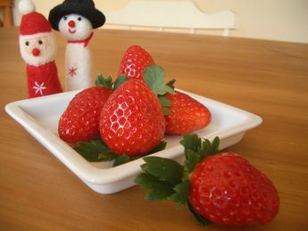 もう11月もあと少し・・・いよいよ年末です・・・・年末になると出回るもののひとつ♪イチゴ~~~~収穫時期ではないのに、クリスマスにケーキに不可欠なのでそろそろスーパーで見かけるようになりました。このイチゴは、市内のヨコタさんと言う農家で作っているイチゴ♪良く行く八百屋さんに寄ったら発見!お店のおじちゃん「出口さん! ヨコタさんちのイチゴ入ってるよ~」私「わお♪ くださあ~~~い」このイチゴ少々お高いのですが・・・・・おいしい♪・・・・何と言ってもすばらしい香り♪購入して家に帰るうちに・・・車の中がイチゴの香りでいっぱいになります。朝ごはんのプレートに、このイチゴがのる日は・・・・とってもしあわせ♪ヘタが青々として葉っぱみたいに大きいのだ♪