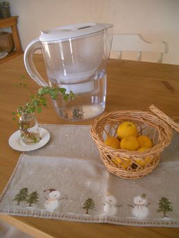 先日のセミナーで生徒さんから「ゆず」をいただきました。ぎょえ~~~と会場で絶叫してしまいましたが、私は、ゆずが大好き♪以前にも書いたかと思いますが、我が家にはいつもシークワーサーが冷蔵庫に入っています。この沖縄のすっぱい汁と会津でとれた蜂蜜をお湯で割って飲むのが大好き♪夏でも冬でもホットで飲んでいるかも・・・・・もともと清涼飲料水はあまり飲まないのですが冷たいのが得意ではありません・・・・夏でも氷を入れた飲み物はトホホです。毎晩、パソコンの前でお仕事をしながらこのお湯を飲んでいるのですが柚子が出回るこの時期は特別♪生の柚子を絞って飲むと・・・・・香りがすばらしくて絶品♪ご機嫌オーラが出まくります・・・・・・これを頂いた日の前日に、柚子の在庫を切らし、しょぼくれていたところだったので大喜び♪残った皮は、薄くむいて細切りにして冷凍♪お料理に使います。それでも残ったときは柚子風呂・・・・・・・ああ・・・幸せ・・・・・ちなみに後に移っているものは、ブリタの浄水ポット。慎ちゃんからの今年のクリスマスプレゼントです。ブリタくんはドイツ生まれの優秀な浄水器。何が欲しいの?と聞かれたのでリクエストしました。お値段がお手ごろなので、これだけじゃ・・と「かもめ食堂」のDVDもいっしょにプレゼントしてくれました。慎ちゃんがDVDをレンタルしてくるとき「何か見たいのある?」と私に聞くのですが、いつも「かもめ食堂♪」と言うので「家に置いておけば?」・・・と買ってくれました。何度見てもすてきな映画なので、お正月になったらゆっくり見ようと思います♪