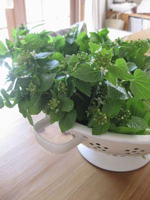 葉わさび・・・の季節がやってきました♪去年も日記に書きましたが、今年も大量にいつものが作れそうです・・・さっそく採ってきたその日のうちに漬物にしました♪青々とした葉に小さい白い花♪ みずみずしくてとってもきれい!大量に作っても冷凍できるので本当に便利です。今朝、さっそく慎ちゃん味見♪「んん~~~~~~ん 春だねえ~~~~~~!!」と喜んでくれました。東京では、お花見だそうですが、私の住む場所はもう少し先・・・・桜が咲いたら、この葉わさびとおにぎりを持ってお花見です♪
