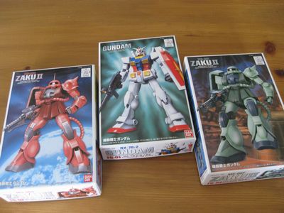 「むっちゃん お土産~~」と慎ちゃん。・・・・・・なんで ガンダム?・・・・・・しかも、プラモ・・・私「うれしいけどお、プラモ作ってる時間ないよお~~」夫「良いじゃん♪いつか作れば。色も塗ってね」私「いつかで良いならがんばるよ・・・・でも、なんでザク2種類も? シャア専用ザクがあるなら、量産タイプのザクじゃなくて ゲルググかドム辺りが良かったなあ・・・・・」夫「その種類しか無かったの~~~」私「・・・結構アッガイとかギャンとかも好きだったりするんだよなあ♪」夫「だ・か・ら これしかなかったのお~~~ 我慢しなさい!」私「はい・・・・・」とりあえず、私のお宝ボックスに入れて、しばし出番を待ってもらいましょう♪3月の15日までは、締め切り山盛りでスケジュールぎりぎり・・・・その後も、スケジュールが詰まっているので、ガンダムがこの箱から出てくるのはいつ頃かしら・・・・・オホホホホ